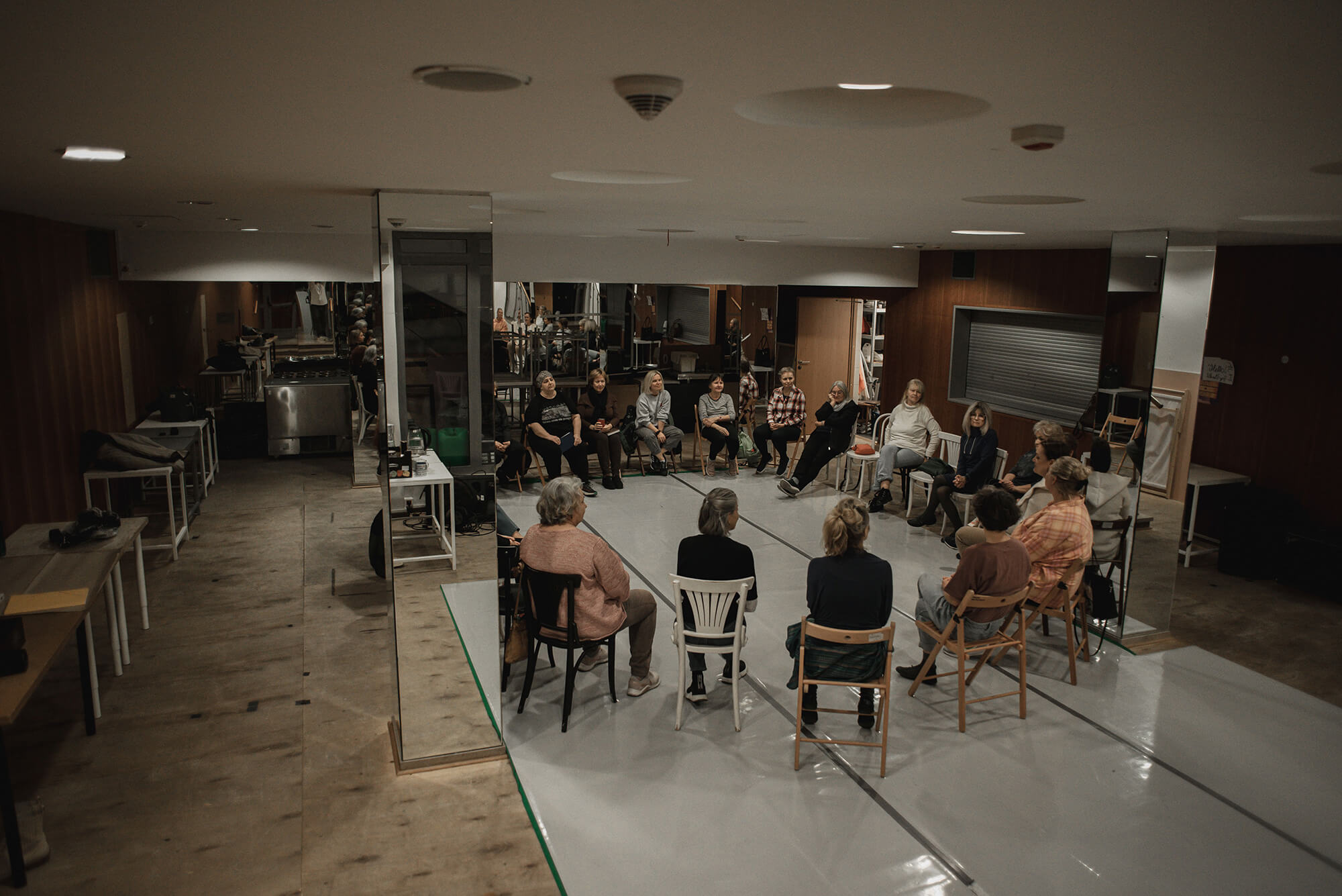 Alana Ivory oraz Katarzyna Stefanowicz zorganizowały serię warsztatów dla wielokulturowej grupy kobiet 50+. W trakcie procesu twórczego grupa pracowała z głosem, zgłębiała tajniki sztuki scenicznej, uczestniczki próbowały swoich sił w improwizacjach aktorskich i choreograficznych, pisały i tworzyły własne teksty. Wynikiem kilkumiesięcznych spotkań był spektakl Warszawskie tango na krawędzi, który odbył się 17 grudnia w sali warsztatowej Teatru Powszechnego.